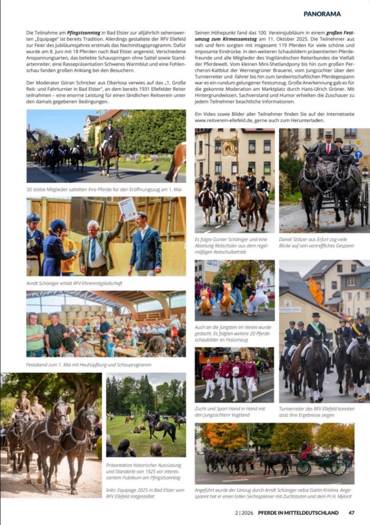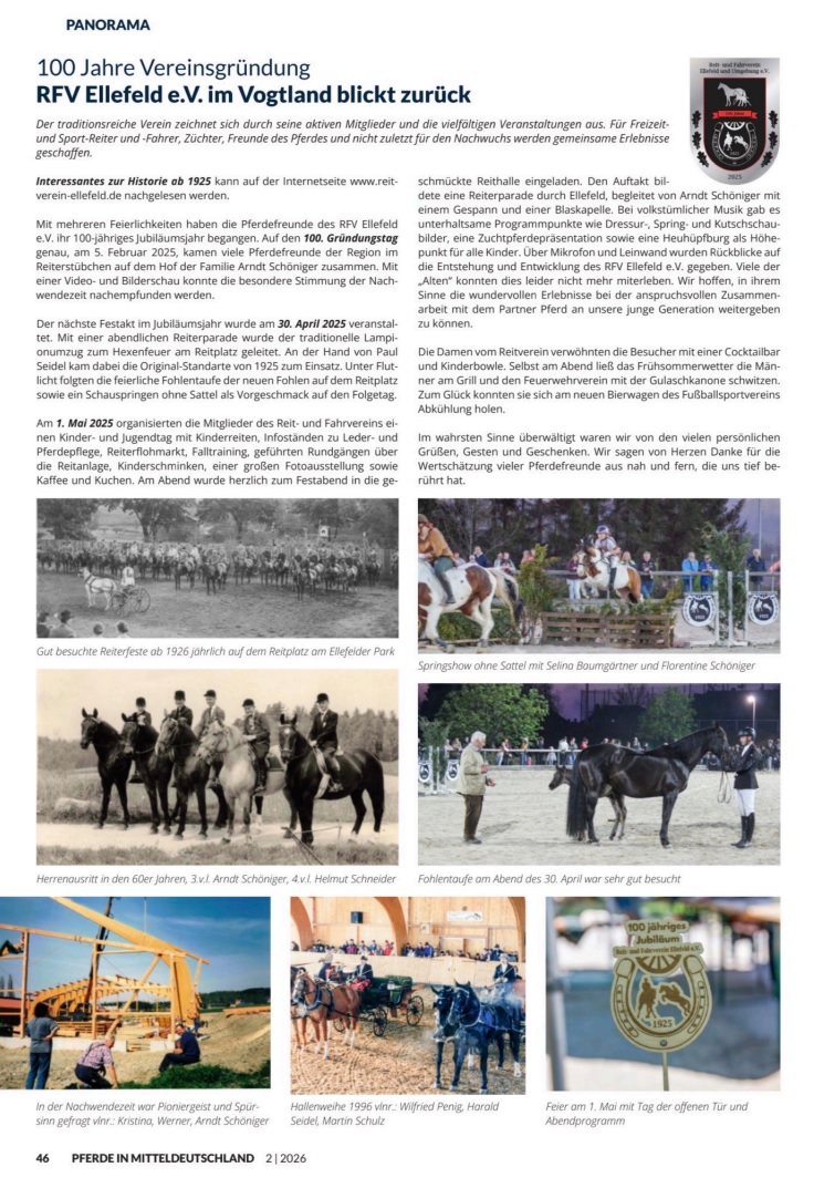 Anlässlich unseres 100jährigen Jubiläums erschien im Februar ein großer Beitrag in der „Pferde in Mitteldeutschland“, den wir euch nicht vorenthalten möchten: