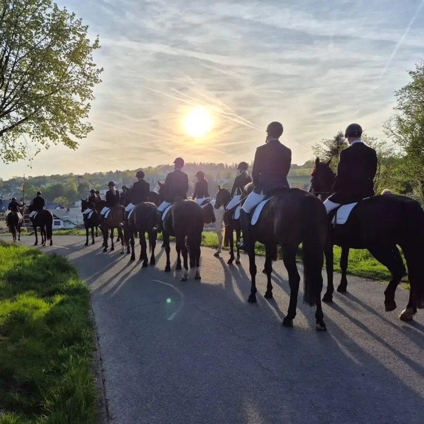 Wir haben uns neben der Ausbildung im Spring-, Dressur-, Freizeit- und Geländereiten sowie Fahren, besonders den korrekten Umgang mit unseren edlen Vierbeinern auf die Fahngeschrieben. Ein respektvolles Verhältnis zwischen Mensch und Pferd ist die Basis für das größte Glück dieser Erde.