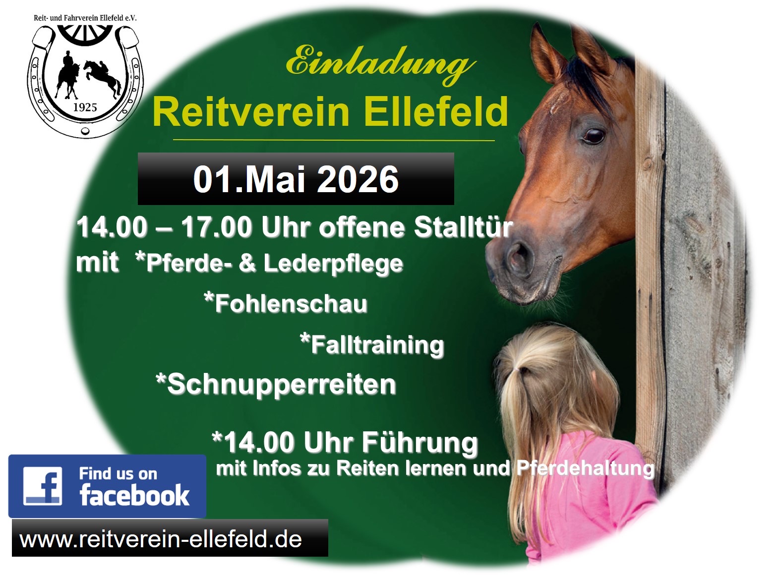 Hier kannst Du unseren Internetauftritt durchstöbern und Dir die wichtigsten Infos über unseren Verein verschaffen. Wir würden uns freuen, Dich bald auf der großzügigen Reitanlage in Ellefeld (Vogtland) willkommen heißen zu dürfen!