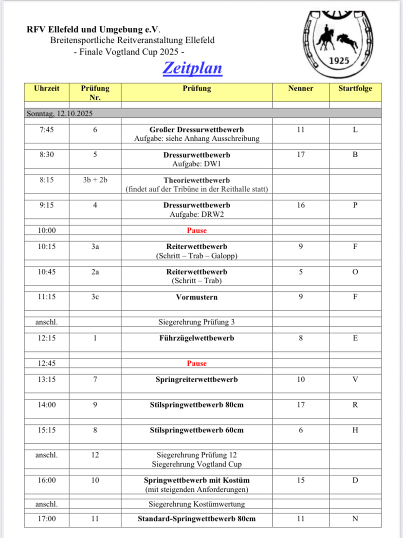 Breitensport-Turnier zur Ellefelder Kirmes am 12. Oktober 2025