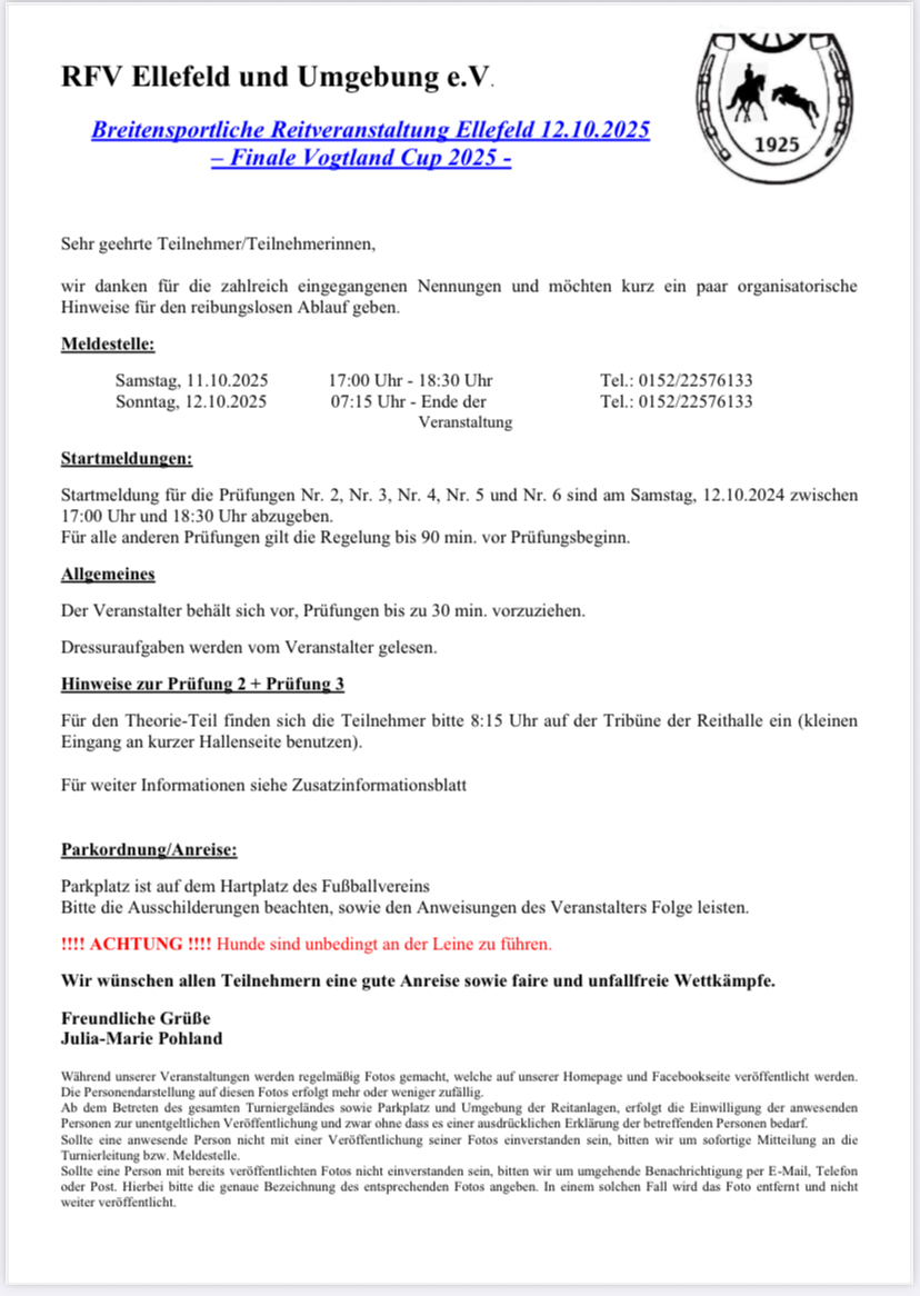 Hier kannst Du unseren Internetauftritt durchstöbern und Dir die wichtigsten Infos über unseren Verein verschaffen. Wir würden uns freuen, Dich bald auf der großzügigen Reitanlage in Ellefeld (Vogtland) willkommen heißen zu dürfen!